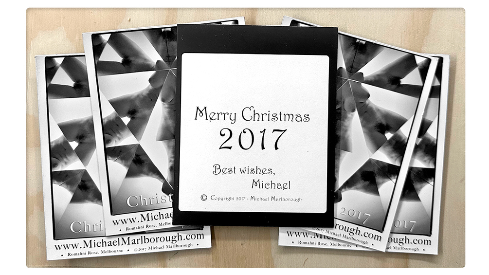 Printed on gloss photographic paper through a digital enlarger, mounted to a magnetic backing and includes the Christmas greeting on the rear side.